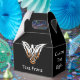 Ícone de pássaro estilo tribal inspirado em designs de nó celta. Cor de fundo personalizada. Texto personalizado.