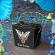 Ícone de pássaro estilo tribal inspirado em designs de nó celta. Cor de fundo personalizada. Texto personalizado de ambos os lados.