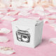 Padrão retroativo da caixa de expansão dos anos 80 em produtos de festa e favores.
