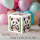 Dê a sua convidada esta encantadora caixa de Chá de fraldas de bonecas de espera de ursos de pano! O complemento perfeito para a sua festa! Um adorável filhote de urso panda rodeado por bambu. Muito espaço para personalizá-la em honra da mãe esperada. Misture e combine com nossos outros produtos de festa divertida da My Baby Boutique!