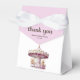 Diga "obrigado você" da forma mais doce com essas caixas de chá de fraldas de menina gêmea! Apresentando "obrigado" em tipografia elegantemente branca e uma encantadora ilustração aquática de dois ursos peludos sentados em um carrossel rosa, estas caixas de favor adicionam um lindo toque de livro de histórias à sua celebração. Perfeito para segurar pequenas guloseimas, doces, ou guardas para hóspedes, e facilmente personalizável com nome e data de chá de fraldas, estas adoráveis caixas de favor são a maneira perfeita de mandar os hóspedes para casa com um pequeno pedaço do seu dia especial.