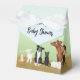 Celebrar uma cerimônia de chá de fraldas, batismo, batizar ou nomear em estilo com esta bonitinha caixa de favores de festas de amigos animais de fazenda. Apresentando um burro, um ganso, uma galinha e seus pintinhos, uma cabra bebê, um leitão, um coelho, dois cordeiros, uma cola de fronteira, um gato preto e uma vaca e seu bezerro, a caixa pode ser personalizada, como quiser.