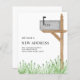 Este anúncio de mudança de orçamento permite que familiares e amigos conheçam seu novo endereço. Este anúncio de orçamento é impresso em papel e há versões de cartão na minha loja. É decorada com uma caixa de correio de aquarela e tipografia moderna. Você pode adicionar seu número de casa. Original Watercolor © Michele Davies.