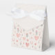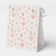 Uma delicada caixa de favores com corações rosa suave combinados com elementos florais sutis.