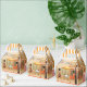 Caixa de favores elegante com uma bonito cena de rua com senhoras desfrutando de um café. O retângulo de fundo sob o texto "Docet Bakery" pode ser ajustado em tamanho e cor se você quiser. Bonita para qualquer celebração ou para ser usada por um padeiro, por exemplo.
