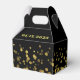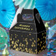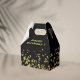 Um padrão com brilho dourado sobre fundo preto torna esta caixa de favor elegante e perfeita para arrumar um presente para um ente querido. Pode adaptar o texto aos seus desejos e necessidades.