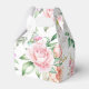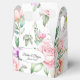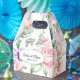 Esta caixa de favor de casamento é mostrada em um lindo design de estampa floral multicolorida. Mostrada com nomes e data de exemplo.
