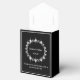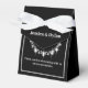 Esta caixa de favor de festa é mostrada em uma cor preta e branca elegante com um acento de brilho de diamante no centro da frente.