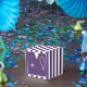 O partido de enfermeira criativa favorece presentes com esfregões e estetoscópios de hospital roxo.