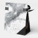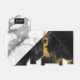 Caixa de presente de casamento ou ocasião especial chic, com gráficos de aparência de mármore feitos em branco, preto e dourado. Uma área de texto preta e dourada, na aba da caixa, tem texto personalizado pronto para personalizar para o seu evento.