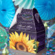 Coloque seus presentes de chá de panela/festa de casamento nessas caixas de favores florais rústicas roxas inspiradas em girassóis.