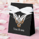 Ícone de pássaro em estilo tribal inspirado em desenhos de nó celta. Cor de fundo personalizada. Texto personalizado em ambos os lados.