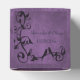 Personalize uma caixa de favoritos de casamento única para convidados com esta caixa de favores de púrpura. O design de caixa de favoritos apresenta um fundo de grunge roxo adornado com uma vinha de folha e dois pombinhos em repouso. Personalize com os nomes do noivo e da noiva junto com a data do casamento. Material adicional disponível com esta design também. Precisa de ajuda para a personalização? Peço-lhe que me contacte e que elabore a redação e os pormenores para que este design seja ajustado para vossa satisfação.
