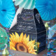 Coloque seus presentes de chá de panela/casamento nesses caixotes florais azuis marinhos inspirados por girassóis.