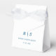 Adicione um pouco de sofisticação ao seu casamento com esta Elegante caixa de favoritos do Monograma Azul. Apresentando um design eterno com fundo branco nítido e um refinado monograma azul, essa caixa de favoritos é perfeita para apresentar doces, presentes ou keepsakes. Ideal para casamentos, festas de noivado e eventos especiais.