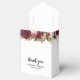 Caixas de favoritos de casamento elegantes com lenhador de cor d'água rústica e florais cor-de-rosa pincelado, suas iniciais, o ditado "obrigado você", seus nomes e a data do casamento.