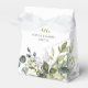 Caixa de Favor do Casamento Verde. Este convite de casamento na moda e elegante apresenta um lindo verde floral de cor aquosa, pintado manualmente, eucalipto floral. Localizar itens correspondentes na Coleção de Verduras Fluviais Eucalyptus Eucalyptus.