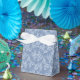 Uma caixa de favores de moda, tipicamente com impressão floral ao estilo indiano em azul Indigo lavado em azul Denim, esboçado em branco. Parte da coleção Posh e Painterly 'Indigo', esse padrão pode ser facilmente ajustado para ajustado qualquer Favor Box.