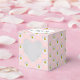 Coração branco com nomes de recém-casados em padrão rosa bege e margarida.
