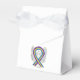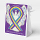 A caixa de favoritos do partido de anjo da guarda apresenta a pintura de um anjo de fita de reconhecimento azul, marigold e roxo. A cor para o cancer da bexiga é amarela ou dourada, azul e roxa. Amarelo foi a cor inicial da fita de reconhecimento. A nova fita multicolorida foi criada pela Sociedade Americana de Canceres Bladder. As caixas de favorecimento do partido angel de consciência azul, marigold e roxo podem ser personalizadas com mensagens personalizadas para fazer obrigado de excelente que você oferece para arrecadações de fundos, educação de conscientização ou outros eventos ou ocasiões especiais. Que esta fita azul, marigada e roxa ajude a apoiar esta causa!