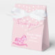 Uma bela caixa de chá de fraldas de cavalo de balanço rosa. Muito obrigado pela tipografia elegante da escrita. Personalize o nome e a data. Cores cor-de-rosa para uma festa de babá. Excelente para um novo bebê. O cavalo Rocking temia uma caixa de favores com estrelas brancas sobre fundo rosa.