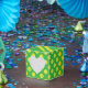 Caixa de favorecimento do tênis em cor verde ou personalizada. Design de padrão de bola de tênis. Excelente para festa de aniversário infantil, casamento, reunião de clubes, equipes etc. Cor de fundo personalizada. Caixas de forma diferentes.