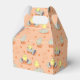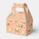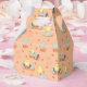 Preencha esta linda caixa de favorita de laranja macia com deliciosos presentes de Páscoa para seus convidados. Ela tem um padrão adorável de pequenas galinhas. O texto diz "Feliz Páscoa", mas você pode personalizá-lo com o seu próprio.