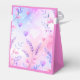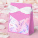 Uma embalagem cor-de-rosa fofinha com impressão floral e cardíaco em tons de rosa.