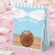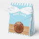O partido criativo de basquete favorece presentes com bola em fundo azul claro. Edite texto para personalizar para festa de aniversário de basquete, dia de jogo, Noite de Mais velho ou outro evento desportivo.