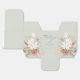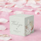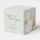 Linda orquídea branca boêmica russa e arranjos de folhas botânicas desidratadas, caixa de favoritos de casamento. Fundo de cor verde prateado, coordenando o texto das cinzas escuras com o gráfico "Obrigado" e o sotaque cardíaco de rabisco. Projetado para combinar com nossa Coleção de Casamentos Boêmia Oasis.