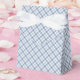 Uma caixa de favoritos de tendas chic, com um padrão de verificação diagonal de azul e branco de Indigo. Parte da coleção Posh e Painterly 'Indigo', esse padrão pode ser facilmente ajustado para ajustado qualquer Favor Box.