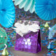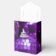 Caixa de presentes de na moda com uma coleção de bolhas de Natal roxas e prateadas. Um design personalizável para você personalizar com seu próprio texto, imagens e ideias. Imagem criada usando uma fotografia original e técnicas digitais.