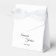 Essa simples caixa de bonificação de tendas de caligrafia branca e preta traz um luxo elegante, mas moderno, a um casamento ou evento minimalista e mais tradicional ou formal. A caligrafia casual permite um sentimento antigo, enquanto o design neutro de classe pode ser combinado com quaisquer aspectos únicos de sua celebração.