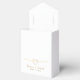 Caixa de favores de casamento simples, elegante, minimalista e moderno com noiva e noiva, com corações de data e ouro.