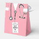 O hospital de enfermagem criativa esfrega o design com esfregões cor-de-rosa para a festa de formatura escolar. Editar texto para personalizar para formando enfermeiro.