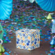 Caixa de Favor do Partido Festivo em Blues e amarelos para a temporada de Férias, Patterada em Ornamentos de Árvores
