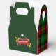 Uma caixa de favor do festival com uma design de Natal vermelha e verde, com texto "Felizes Feriados". Personalize-o para alterar fontes ou dimensionamento, até salve seu design para mais tarde.