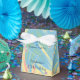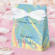 Que maravilhosa Caixa de Favor do Partido personalizada para um 75º Aniversário ou outra ocasião. Esta Favor Box é decorada com um fundo azul e amarelo pastel e pequenos corações rosa. Na frente, Nome e Título do Evento em azul profundo. Na frente e atrás "Obrigado por Celebrar Conosco" (ou pelo seu texto personalizado). Uma fita branca adiciona um toque festivo. Uma caixa de favores moderna, elegante e chic. Todos os Direitos Reservados © 2015 Alan & Marcia Socolik.