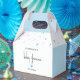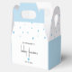 Caixa de favoritos para um chá de bebê com um borrão de corações azuis e uma fonte chic. O design minimalista combina com a nossa popular coleção de papelaria moderna "oh boy" de artigos de papelaria e acessórios. Personalize com o nome da mãe e a data. Por favor, note que as palavras 'chá de fraldas' e 'obrigado você' não são editáveis a não ser a cor.