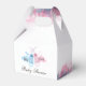 Caixas de presentes bonitinhas para sua garota e chá de fraldas gêmeos escritos em tipografia de chá de fraldas de cinza divertida e um roteiro na moda com aquarelas cor-de-rosa e azul de dois calçados. Personalize os nomes e a data de chá em uma simples tipografia.