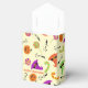 Esta é uma caixa de favoritos divertida do Dia das Bruxas com doces, abóboras e chapéus de bruxa em um fundo amarelo claro. A caixa de favoritos pode ser personalizada alterando o nome na caixa e o texto. Pode ser dada em festas ou eventos corporativos.