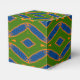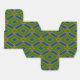 Este padrão único inspirado na Ásia apresenta um aspecto de corte de madeira e uma paleta multicores de verde, azul, laranja e preto, que adiciona um toque de sofisticação moderna à sua doação de presente astuto.