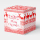 Caixa personalizável de favor Feliz Natal. Seu nome e mensagem no lindo padrão do estilo Lapland em fundo vermelho e branco. Disponível em outros estilos. Correspondência com guardanapo de papel de Natal personalizado, placas de papel e muito mais...