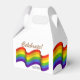 Esta Caixa de Favoritos PRIDE THEMED apresenta o sinalizador LGBTQ. No painel frontal e traseiro, o texto diz "Celebrar!". O painel frontal tem uma área para texto personalizado.