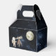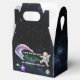 Mande seus hóspedes para casa com um guardião estelar da sua celebração com o tema espacial! Esta encantadora caixa de favor, adornada com um lindo astronauta de ursos peludos e sotaques celestes, faz o obrigado perfeito para uma festa de aniversário fora deste mundo. Concebido para corresponder ao convite temático espacial, é ideal para segurar guloseimas, brinquedos ou tesouros cósmicos. Com "Obrigado" ousadamente exibido, esta caixa de favor é uma forma deliciosa de encerrar uma jornada inesquecível através das estrelas!