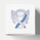 A caixa de favorecimento do partido de anjo da guarda apresenta a pintura de um anjo segurando uma cinza e uma fita azul de conscientização com uma gota de sangue que aparece nesta roupa de conscientização de causa personalizada. A Diabetes Mellitus Dependente de Insulina (DMID), também conhecida como diabetes tipo 1 ou juvenil, usa essa fita para promover a conscientização sobre sua causa. As caixas de favorecimento do partido cinza e anjo de consciência azul podem ser personalizadas com mensagens personalizadas para fazer do obrigado excelente que você oferece para arrecadações de fundos, educação de conscientização ou outros eventos ou ocasiões especiais.