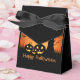 Caixa de favoritos do partido mostrada a preto com abóboras com fita de sotaque preta. Perfeito para dar presente de Halloween. Personalize este item ou comprar como está.