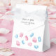 O gênero do tema Namorados doce e bonito revela a caixa de favoritos do partido com ilustração de macarões cor-de-rosa e azuis em forma de coração.