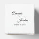 Essa simples caixa de favelas de caligrafia branca e preta traz um luxo elegante, mas moderno, a um casamento minimalista e mais tradicional ou formal. A caligrafia casual permite um sentimento antigo, enquanto o design neutro de classe pode ser combinado com quaisquer aspectos únicos da celebração do casamento.