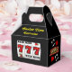 Uma caixa de favor com um tema de casino. A frente e o verso têm três falsos tecidos, brancos e laterais têm a palavra jackpot e os quatro símbolos das cartas de jogar. O texto pode ser personalizado.